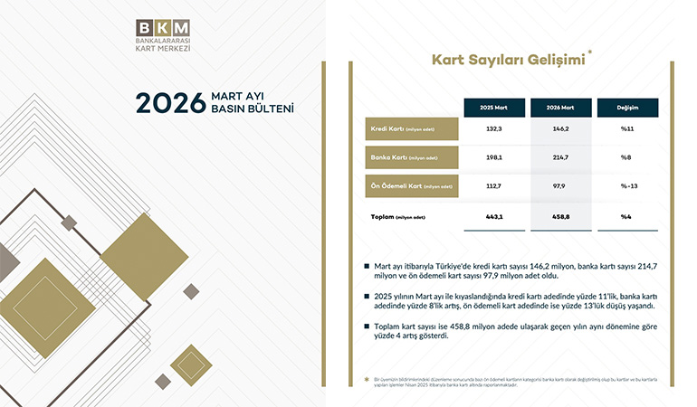 | Kart Sayıları (Milyon Adet) | 2025 Mart | 2026 Mart | Değişim |