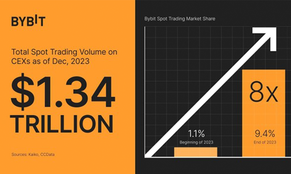 Bybit‘in Pazar Payı, Rekor Kıran 1,34 Milyar Dolarlık Toplam Spot Piyasası Büyüklüğü Arasında Sekize Katlandı.