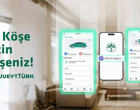 Kuveyt Türk Mobil’e eklenen “Benim Köşem” menüsü ile araç ve konut işlemleri tek ekranda toplanıyor. Sigorta, finansman, fatura ve belge yönetimi mobil bankacılık içinde kişisel bir deneyim alanına dönüşüyor.