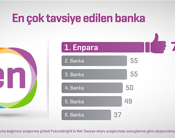 FutureBright tarafından gerçekleştirilen araştırmaya göre Enpara, 77 Net Tavsiye Skoru ile müşterileri tarafından en çok tavsiye edilen banka unvanını aldı.