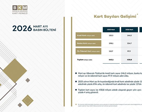 BKM tarafından paylaşılan Mart 2026 verilerine göre Türkiye’de kartlı ödemeler 2,6 trilyon TL seviyesine ulaşırken, internet üzerinden yapılan harcamalar yüzde 53 büyüme kaydederek rekor tazeledi.