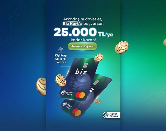 Hayat Finans, Biz Kart için “Arkadaşını Getir Kazan” kampanyasını başlattı. Kampanya kapsamında kullanıcılar 25 bin TL’ye kadar nakit ödül kazanma fırsatı elde ediyor.