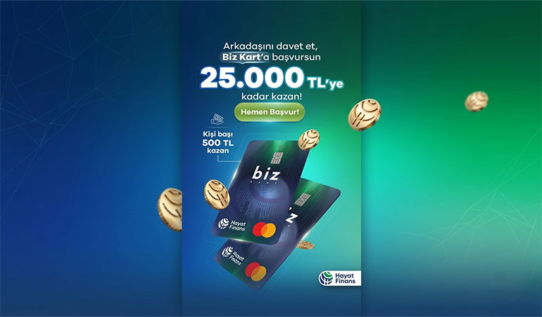 Hayat Finans müşterileri, uygulama üzerinden oluşturdukları davet kodunu yakınlarıyla paylaşarak onları bankanın müşterisi olmaya yönlendirebiliyor. Davet edilen kişinin ilk Biz Kart başvurusunu tamamlaması halinde daveti yapan kullanıcı 500 TL nakit ödül elde ediyor. Bu yapı, kampanya süresince tekrarlanabilir şekilde çalışırken, toplam kazanç tutarı 25 bin TL’ye kadar ulaşabiliyor.