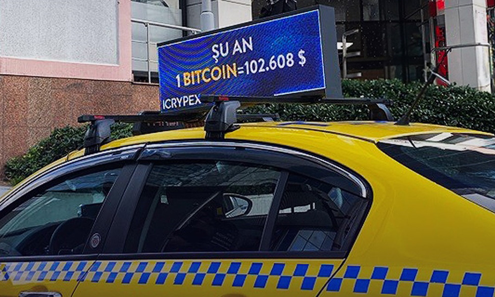 ICRYPEX, Kriptoyu Sokağa Taşıyor, Taksilerde Canlı Bitcoin Fiyatları Gösterilmeye Başlanıyor.