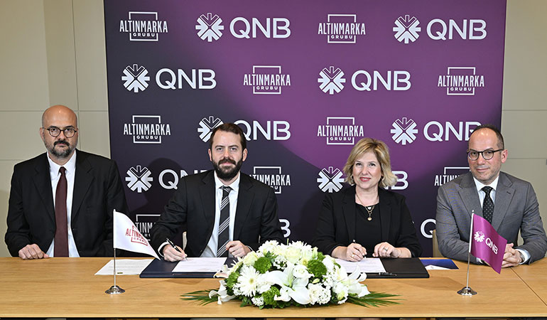 QNB Türkiye ev sahipliğinde gerçekleştirilen imza töreni, bankanın düşük karbonlu ekonomiye geçiş yaklaşımını somutlaştıran önemli başlıklardan biri olarak öne çıktı. Törene Altınmarka Grubu Yönetim Kurulu Üyesi Kaan Altınkılıç katılırken, QNB Türkiye adına Kurumsal Bankacılık ve Proje Finansman Genel Müdür Yardımcısı Zeynep Kulalar, Kurumsal ve Ticari Proje ve Yapılandırılmış Finansman Direktörü Umut Ultav, Kurumsal ve Ticari Proje ve Yapılandırılmış Finansman Proje Müdürü Erdal Gürsoy ile Kurumsal ve Ticari Proje ve Yapılandırılmış Finansman Müdür Yardımcısı Ersin Aydın yer aldı.